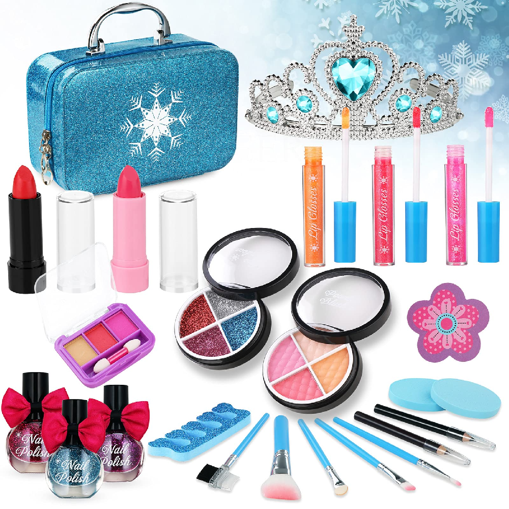 Kids Makeup Kit For Girls 22 Pcs Washable Real Makeup Set Frozen Toys For 3 4 5 6 Years Old Girls Kids Play Makeup Starter Kit For Kids Christmas Birthday Gift Walmart Com